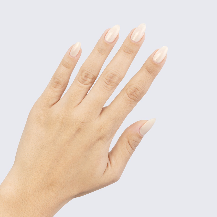 This lovely cream-toned polish is charmed with a soft golden shimmer.